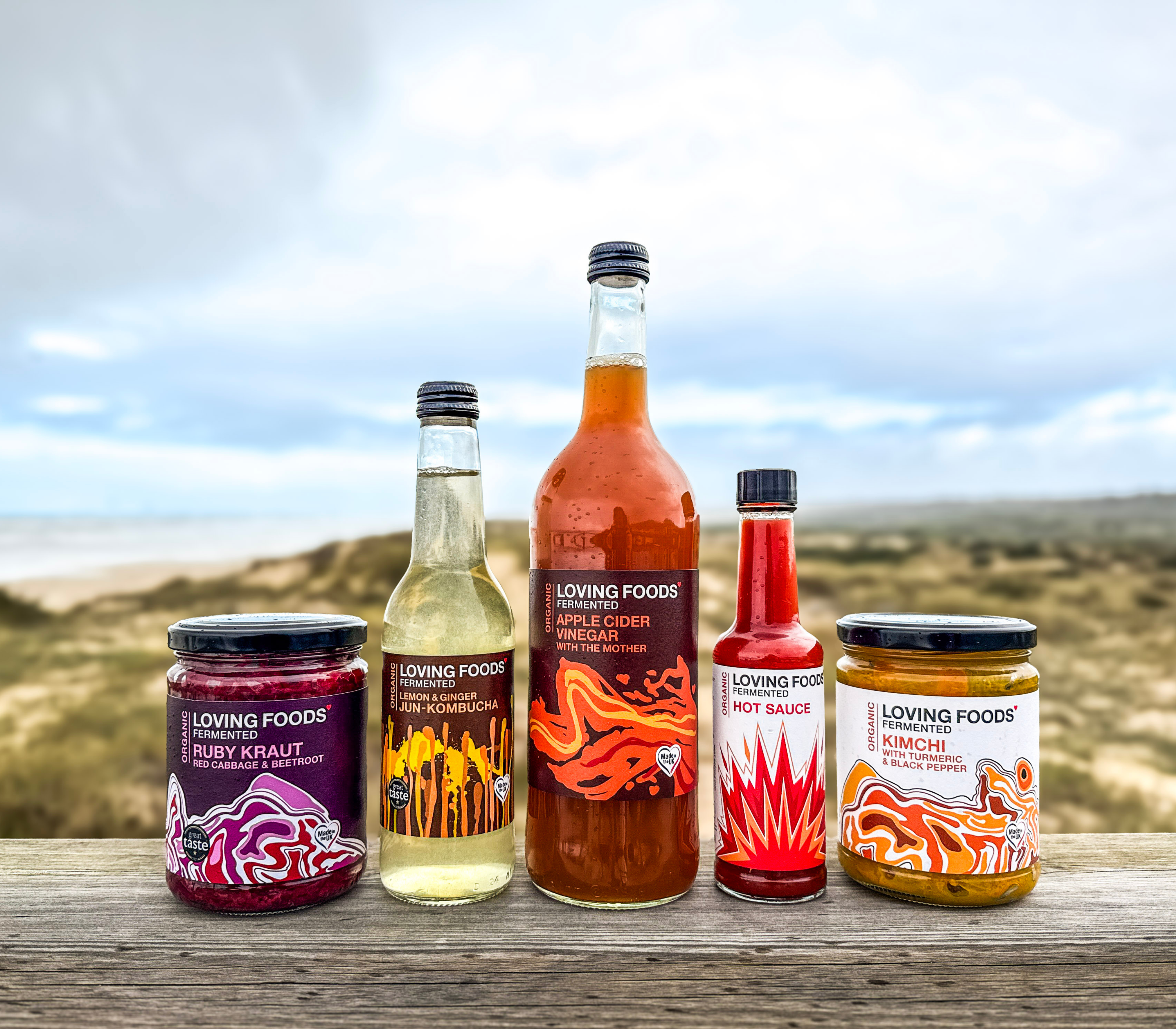 The Winter Warmer package brings together five key fermented and functional foods: Ruby Kraut (a vibrant fermented red cabbage and beetroot kraut), Jun Kombucha (lemon & ginger flavour), unfiltered Apple Cider vinegar, our hot sauce with fermented chillies and red peppers, plus another classic Kimchi infused with Turmeric and Black Pepper.